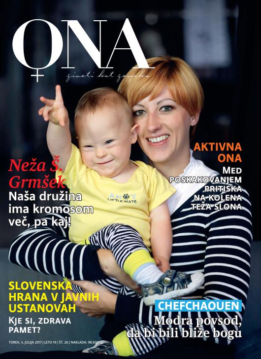 »Javnosti želim povedati, da imeti otroka z downovim sindromom ni nič kaj takega. To je otrok kot vsak drug; včasih nasmejan in igriv, včasih tečen in zaspan. On je Tristan in pika, šele potem pride vse drugo,« začne pogovor 33-letna Neža Šabanovič Grmšek, komunikativna in pogumna Zasavka, novinarka, urednica. Skoraj leto in pol je od tega, ko so zdravniki pri takrat novorojenčku potrdili diagnozo trisomija 21, in od tedaj se je naučila, da življenja ne moremo nadzorovati, da ga moramo včasih sprejeti in vzeti najboljše, kar nam ponuja. (Onaplus, št.26, 2017, str. 11)